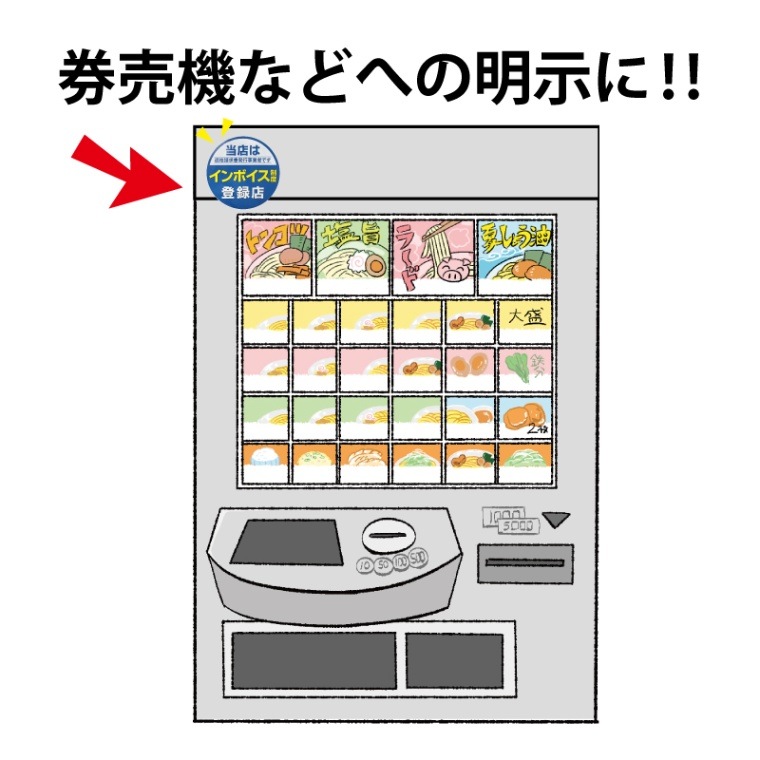 入口ドアやレジ付近にインボイス登録店シールをを明示することで、安心してご入店いただく事ができます。